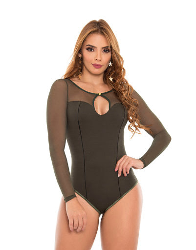 Bodysuit manga larga translucida en Negro